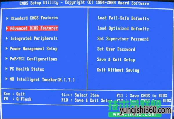 上图1:开机按Del键进入该BIOS设置界面,选择高级BIOS设置Advanced BIOS Features
